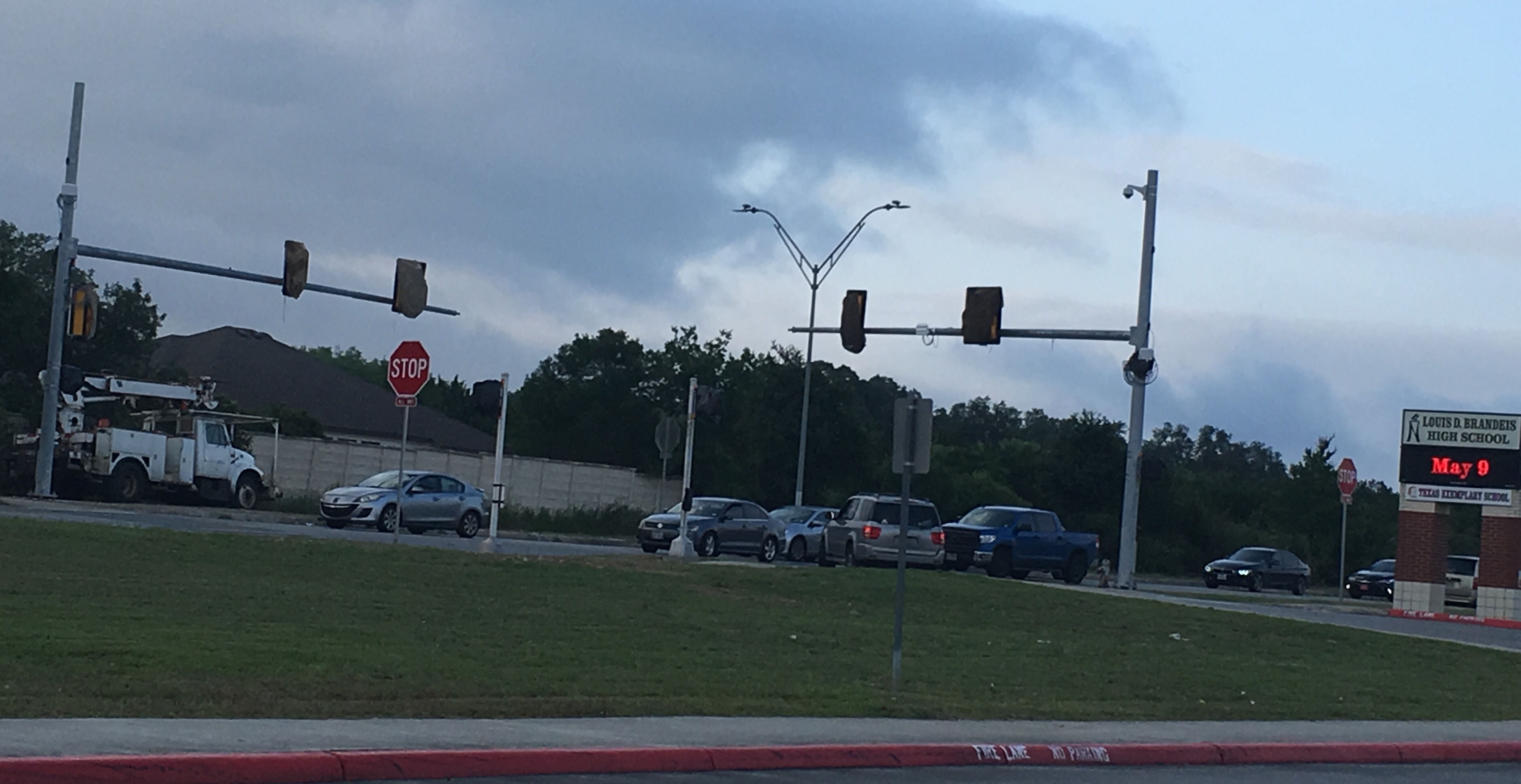 The new stoplight was installed in April and May replacing the stop signs that had been set up in the interim. Until this morning, the light has been a flashing red. The light is located at the main entrance to Brandeis High School on Kyle Seale Parkway.