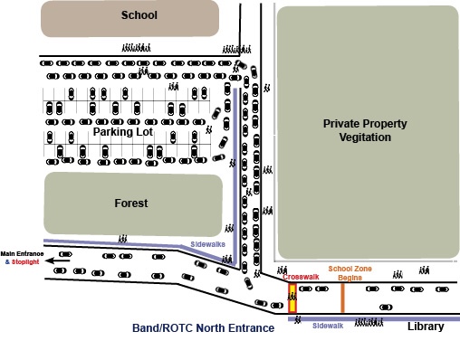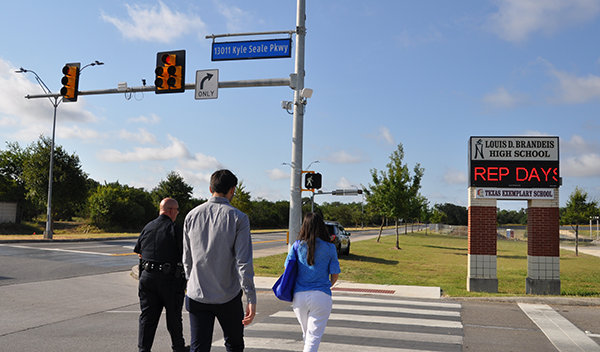 As of today, Brandeis has successfully secured a crossing guard for the Band/ROTC north entrance of the parking lot at Kyle Seale. The guard will be there one hour before and after school.