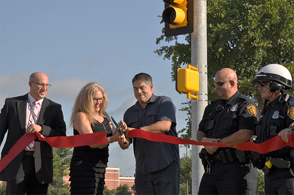This morning, as Councilman Manny Pelaez and Dr. Geri Berger cut the red ribbon, city workers flipped the switch to make our traffic light fully operational. The councilman praised Dr. Berger for her diligence over the years to keep her students safe.